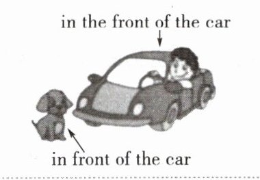 (内/外)部的前面。(2)in the front of 强调一个物体在另一个物体