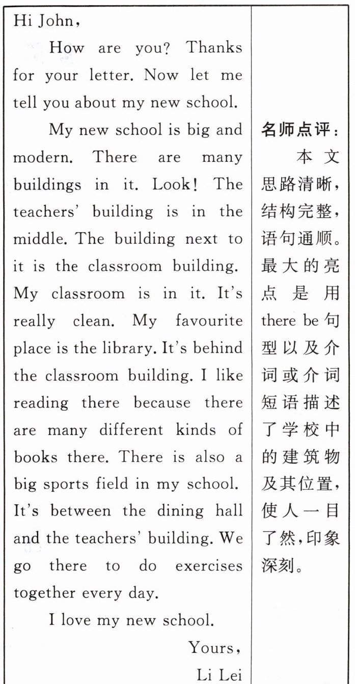 假如你是李磊。上周收到了你的英国朋友 John 的来信,请你向他介绍一下你的新学校。