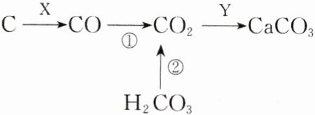 2. 碳及其部分化合物的转化关系如下图所示,其中 X、Y 表示转化过程中的另一种反应物。下列说法错误的是(