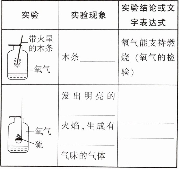 复燃 蓝紫色 刺激性 硫+氧气$\xrightarrow{点燃}$二氧化硫