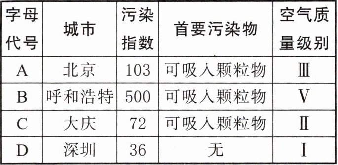 (2)如表是某日我国部分地区的空气质量日报内容: