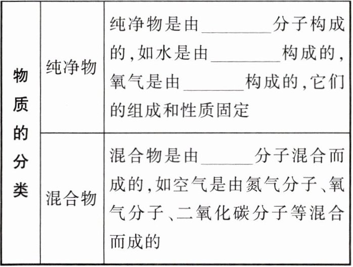 分子本身 分子本身 同种 水分子 氧分子 不同种