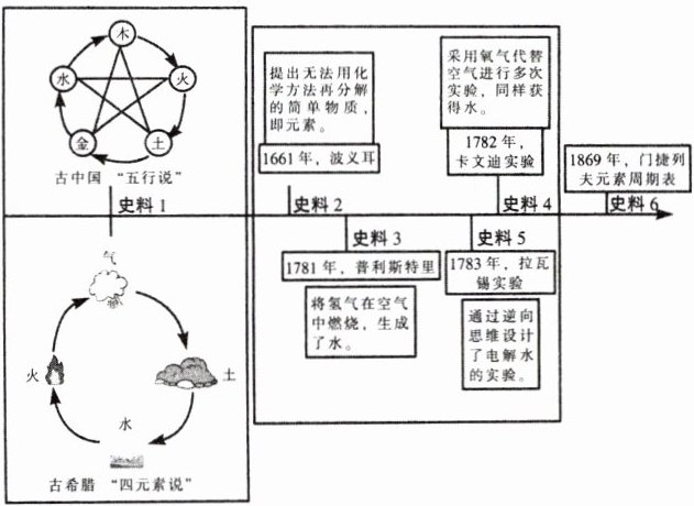 (1) “五行说”和“四元素说”都认为“五行”和“四元素”不可分,水是两种学说中的一种,水的化学式为