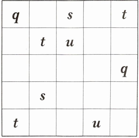 III 填入字母 q,r,s,t 或 u 使横向和竖向的字母不重复。