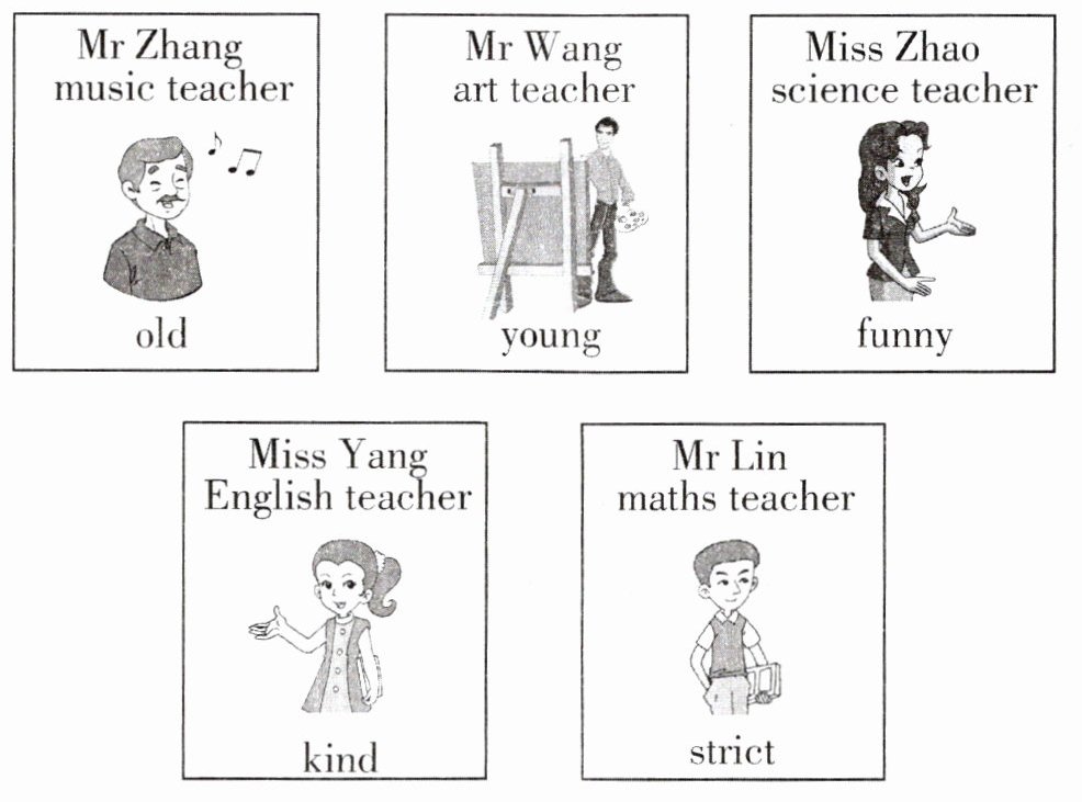 1. old 2. young 3. science; funny 4. kind 5. maths; strict