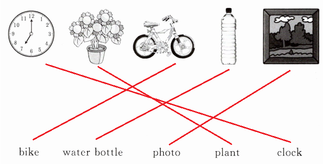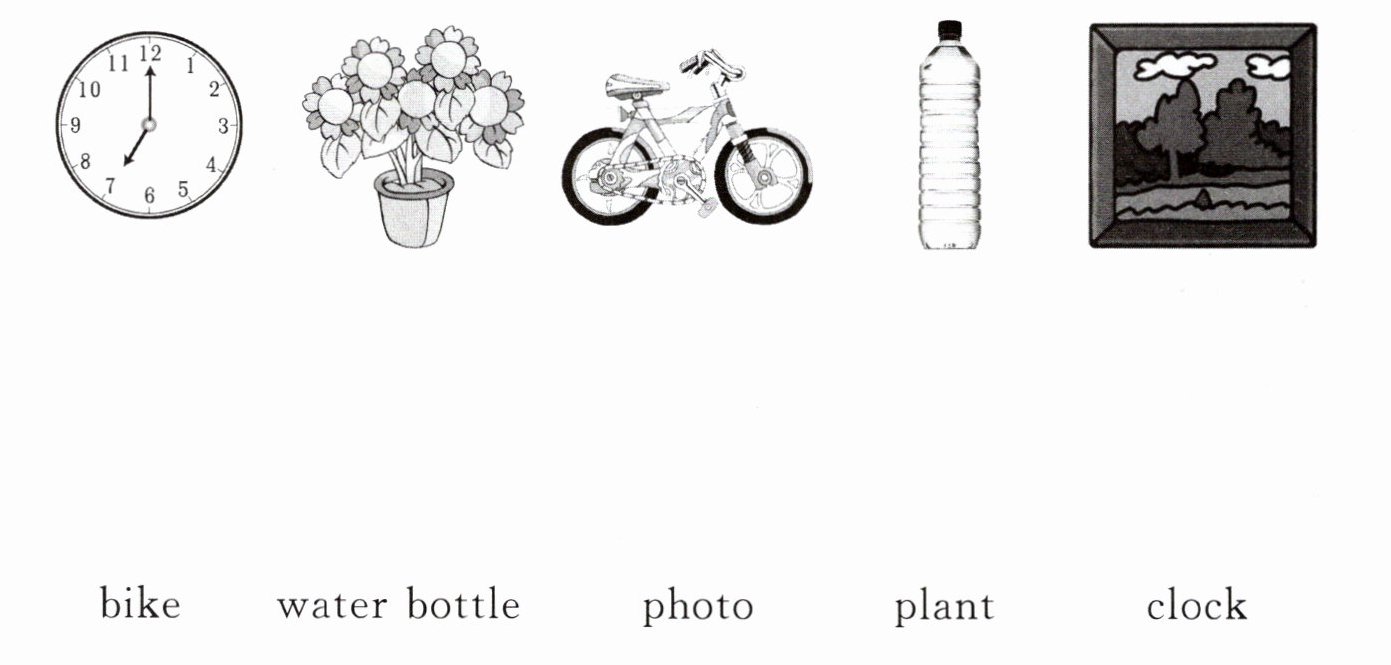 1. bike 2. water bottle 3. birthday 4. Tuesday 5. rainy; rainbow