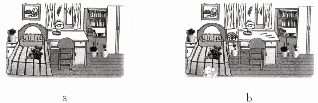 This is my bedroom. There is a bed, a desk and a chair here. I have a big desk and a big shelf(书橱). There are many books on the shelf. There is a closet(衣橱) beside the shelf. There is a lamp on the desk. There are some pencils on the desk. There are two toy bears on the bed. There are four plants in my room. There is a bedside table (床头柜) between the bed and the desk. The phone is on the bedside table. There is a picture on the wall. The chair is in front of the desk. Where is my dog? It's near the bed. How cute! I love my room very much. Do you like it?