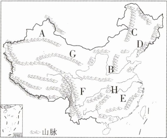 9.(1)天山山脉 东西 阴山山脉、昆仑山脉、秦岭、南岭 (2)太行山脉 山西 河北 (3)大兴安岭 BDEH (4)横断山脉 (5)纵横交织,呈网格状分布