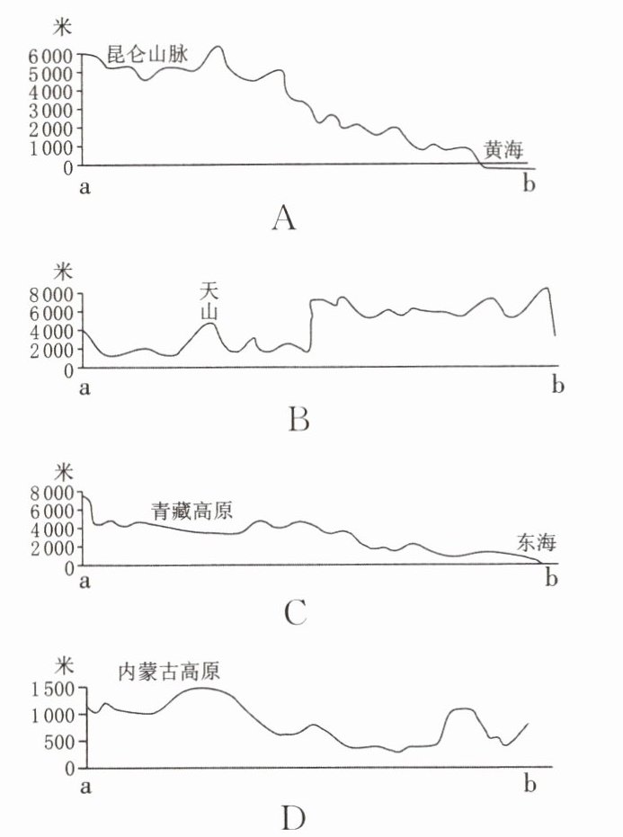 5. 以下沿a—b线绘制的剖面图,正确的是(
