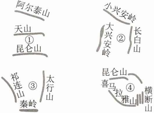 (2024·徐州丰县期中)我国纵横交错的山脉,构成了地形的骨架,也往往是省区、地形区、地势阶梯的分界线。读图,回答1~3题。
