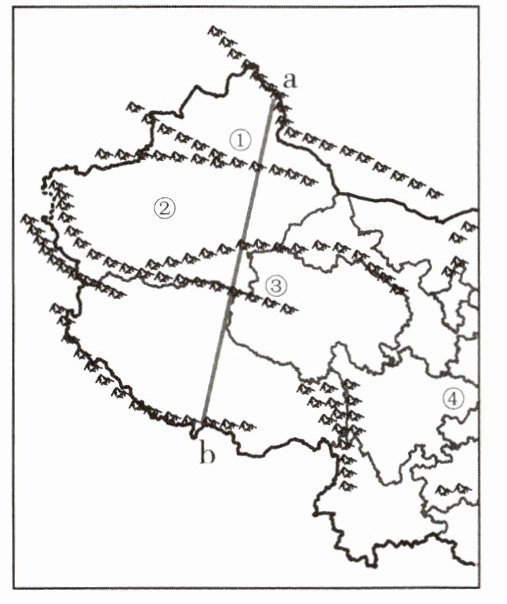 我国西部地形类型丰富。读我国西部地形示意图,回答4~5题。