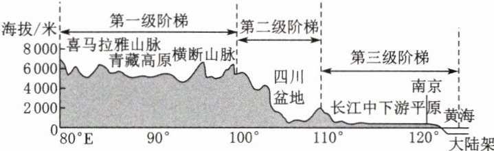 (跨学科·语文)中国地势呈阶梯状分布。读沿32°N中国地形剖面示意图,回答5~7题。