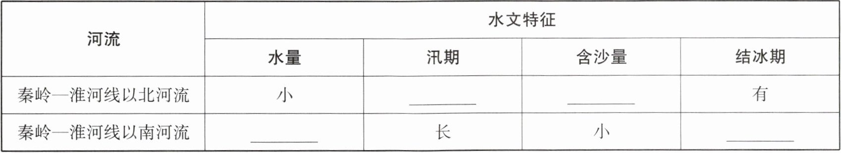 气候影响。2. 秦岭—淮河线南北两侧河流水文特征