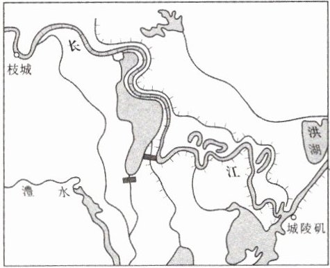 荆江是指长江从湖北枝城到湖南城陵矶的河段,河道弯曲,水流不畅,易发生洪涝灾害。读图,回答7~8题。