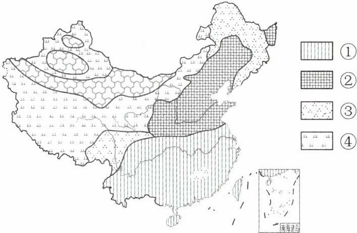 (常考地图)我国土地资源种类多样。读我国主要土地利用类型分布图,回答 3~4 题。