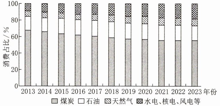 近年来,我国加快能源结构调整。下图示意近年我国能源消费结构。据此完成3~5题。