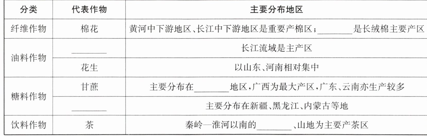 (2)经济作物:种类繁多,有纤维作物、油料作物、