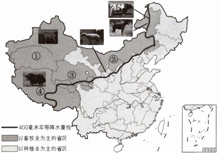 )A. ①—内蒙古牧区