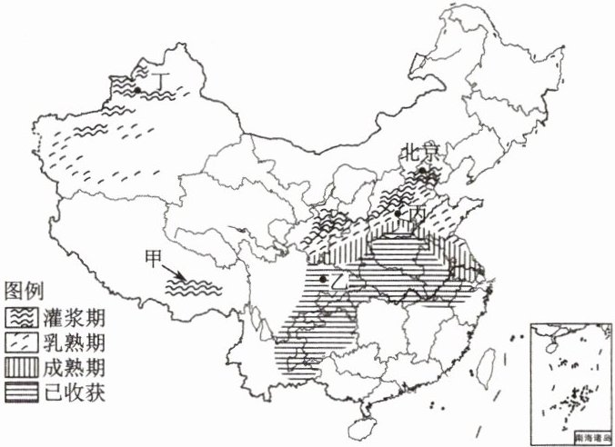 3. 与乙地相比,甲地冬小麦仍处于灌浆期的主要原因是(