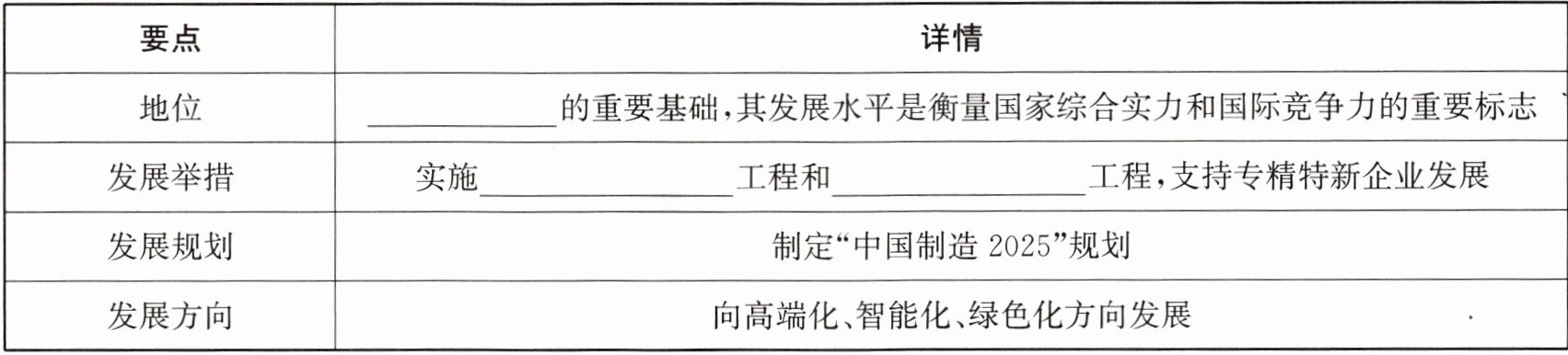 1.(2)规模庞大门类齐全 (3)贫穷落后的农业国 世界工业制造大国 2.国家工业体系 产业基础再造 重大技术装备攻关