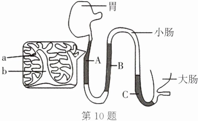 (1)观图可知,a为小肠绒毛,可增大小肠的表面积。