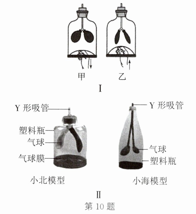 (1)图Ⅰ是小北和小海两位同学在制作膈肌运动模型前绘制的简图,其中的甲能模拟膈肌在