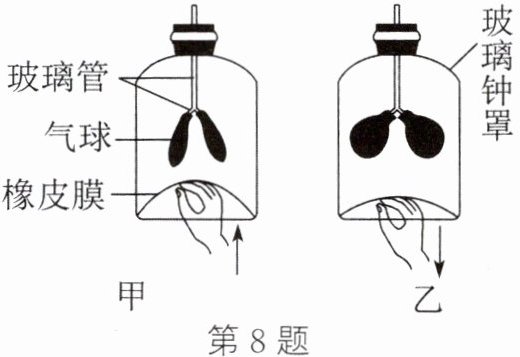 8. 如图是模拟人在平静状态下呼吸运动的模式图,请观察并根据实验现象回答下列问题: