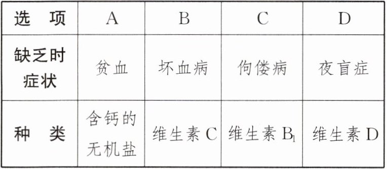 5. 无机盐和维生素对人体的生长发育十分重要,下表中关系匹配正确的是 (