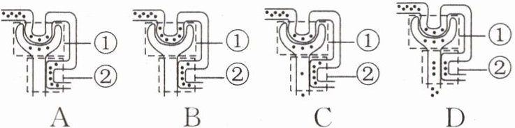 3. (核心素养)如图是健康人正常尿液的形成过程示意图。①②部位发生了重要生理作用,“·”表示某成分。能模拟尿素排出过程的是(