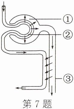 7.(2024·德州)如图为尿液的形成示意图,结构①②③中的液体都含有的成分是(