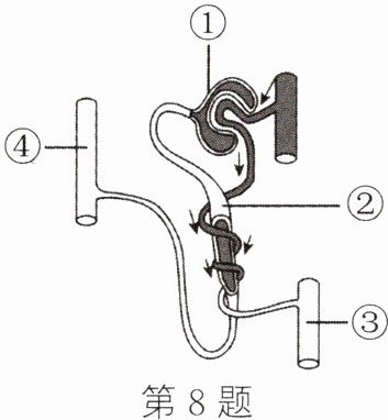 8.(2024·齐齐哈尔)如图为健康人尿液形成过程示意图,下列说法正确的是(