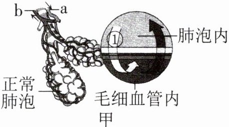 12.(2024·徐州模拟)肺纤维化是由药物副作用、严重的外伤等引起的肺部炎症,如图分别为正常肺泡和肺纤维化的肺泡与血液间气体交换过程的示意图,箭头代表a、b血管内的血流方向。下列叙述正确的是(