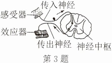 3. (2024·淮安)如图是反射弧的组成示意图,其中能接受刺激,产生神经冲动的是(