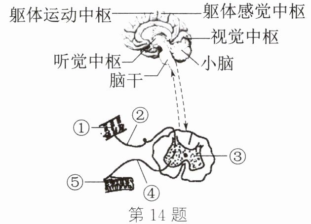 14. (新情境)渐冻症是一种由传出神经受损引起的疾病,患者会逐渐出现肌肉无力、萎缩等症状。请据图回答下列问题: