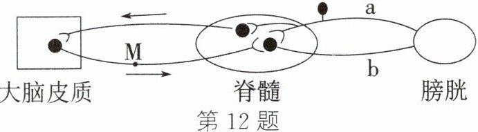 12. (核心素养)如图为人体大脑皮质控制排尿反射的示意图。下列说法错误的是(