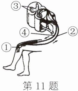 11. 如图为膝跳反射示意图,据图回答下列问题: