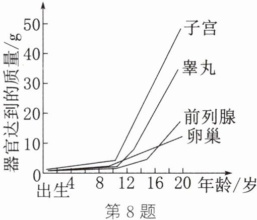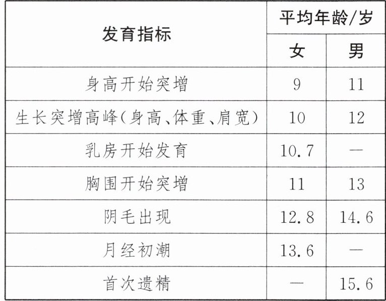 系统的共同作用下,促进生殖器官的发育和第二性征的出现。(3)由上面的图和表可以看出青春期性发育主要表现在