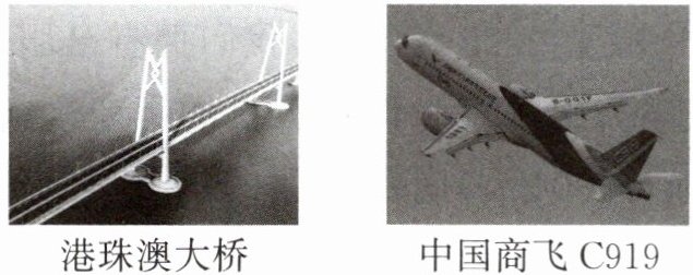 (2)厉害了,我的国。中国商飞C919首飞成功,标志着我国高端装备制造发展到全新高度;南海可燃冰试采成功,中国创造了两项全新的世界纪录;港珠澳大桥主体工程通过国家竣工验收,为超大型跨海通道工程建设积累了宝贵经验……中国正日益繁荣富强。