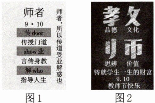 (2)下面是两幅庆祝教师节的宣传画。请任选一幅,从文字设计方面作简要说明。不超过 60 字。