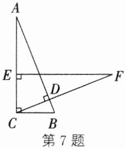 7. 如图,在 Rt△ABC 中,∠ACB = 90°,BC = 2 cm,CD ⊥ AB 于点 D,在 AC 上取一点 E,使 EC = BC,过点 E 作 EF ⊥ AC 交 CD 的延长线于点 F. 若 EF = 5 cm,则 AE =