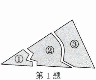 1. 如图,某同学不小心把一块三角形玻璃打碎成三部分,现要去配制一块与原来相同的三角形玻璃,那么应带(