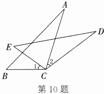 10. (2024·丰县期中)如图,$AB = DE$,$AC = DC$,$CE = CB$.求证:$\angle 1 = \angle 2$.