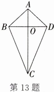 13. (新考向·传统文化)"风筝飞满天,笑语乐无边",由喜闻乐见的风筝可以抽象得到一种特殊的四边形——筝形.如图,在四边形$ABCD$中,$AB = AD$,$CB = CD$,我们把这种两组邻边分别相等的四边形叫作筝形.