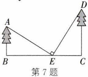 7. 如图,两棵大树相距 $ 13m $,小华从点 $ B $ 沿 $ BC $ 走向点 $ C $,行走一段时间后到达点 $ E $,此时他仰望两棵大树的顶点 $ A $ 和 $ D $,两条视线的夹角正好为 $ 90^{\circ} $,且 $ EA = ED $. 已知大树 $ AB $ 的高为 $ 5m $,小华行走的速度为 $ 1m/s $,则小华行走的时间是