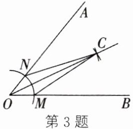 3. (2025·铜山期中)用直尺和圆规作一个角的平分线的示意图如图所示,得 $ \angle AOC = \angle BOC $,则证明这两个角所在的三角形全等的依据是