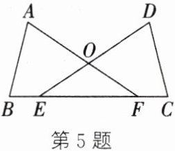 5. 如图,在 $ \triangle ABF $ 和 $ \triangle DCE $ 中,$ AB = CD $,$ AF = DE $,$ BE = CF $,且点 $ B $,$ E $,$ F $,$ C $ 在同一条直线上. $ \angle DEB $ 和 $ \angle AFC $ 相等吗?请说明理由.