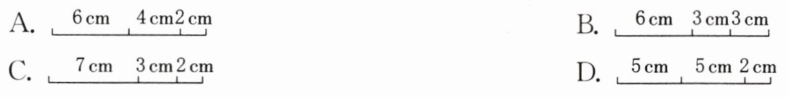 1. 将周长为12 cm的三角形的三条边依次放在一条直线上,其中所标长度正确的是(