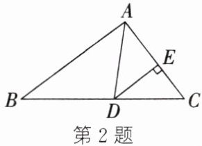 2. 如图,在△ABC中,AD是角平分线,DE⊥AC于点E,DE=2,则点D到AB的距离为(