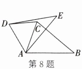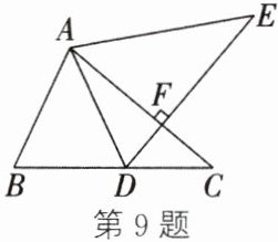9. 如图,将△ABC 绕点 A 按逆时针方向旋转一定角度得到△ADE,点 D 落在 BC 上,AC 与 DE 相交于点 F.若∠C = 40°,DE⊥AC,则∠DAC 的度数为