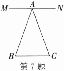 7. 如图,在等腰三角形 ABC 中,顶角∠BAC = 40°,过点 A 作 BC 的平行线 MN,则∠CAN 的度数为(